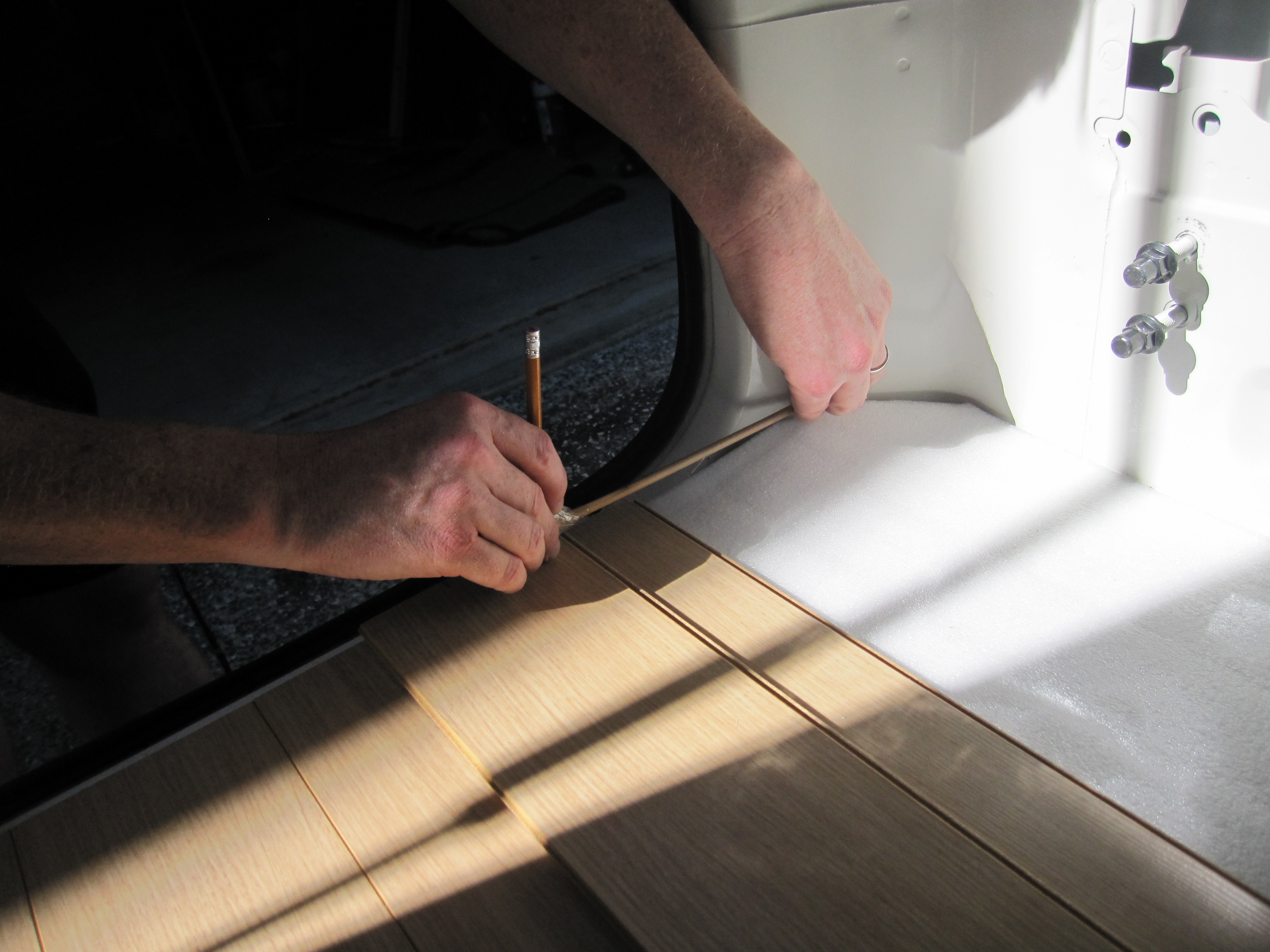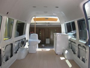 Paul bought the bathroom cabinet and basin from Bunnings, and just had to saw 10cm off the bottom of the cupboard, and cut around the wheel arch and a couple of other protruding objects. I say ‘just’ – this was in 35 degree heat yesterday. The cabinet still needs to be bolted onto the floor, but we need to fit the waste-water tank underneath the basin first.