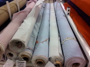 So last weekend I went to a fabric store to get the lay of the land. And a scary land it was. Aisles and aisles of different styles and colours and weights of upholstery material. One of the nice sewing ladies took pity on me as I was feverishly trying to capture each one on my phone. She seemed to be partly speaking in a different language, but the main thing I gleaned was, as long as the fabric doesn’t have a plastic backing, it’s just a matter of taste. Well that should be easy then.