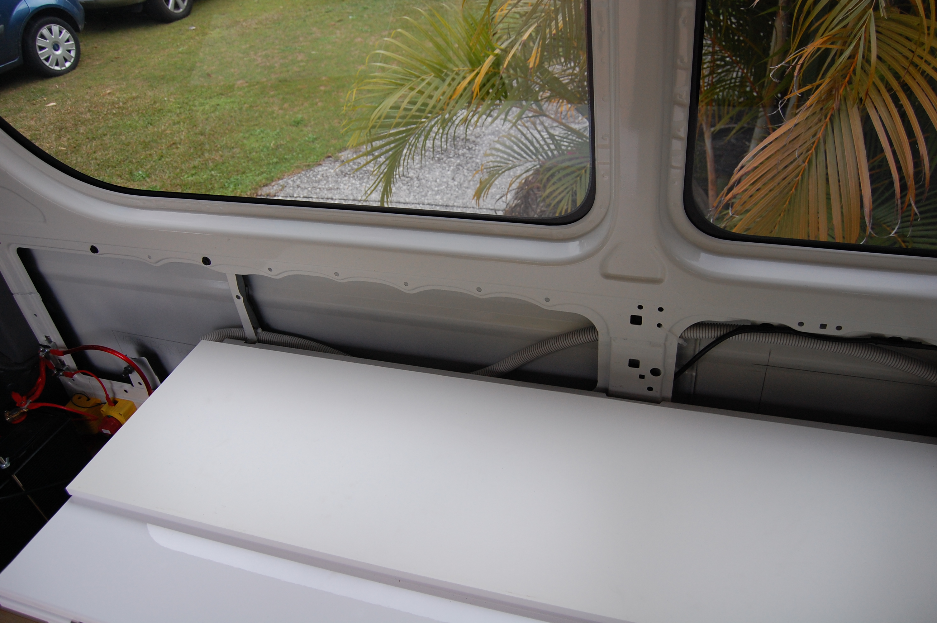 In this case, the van’s metal shell provides the negative connection to the battery. Very handy.