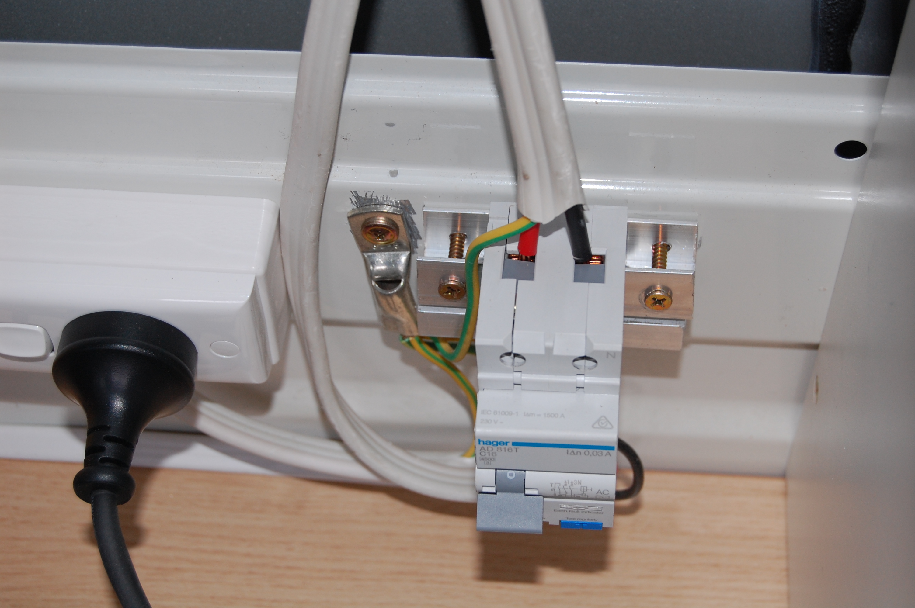 • From the other side of the socket, a 2.5mm cable runs through a conduit (to protect from any sharp metal) along the inside of the campervan to a 16 amp fuse.