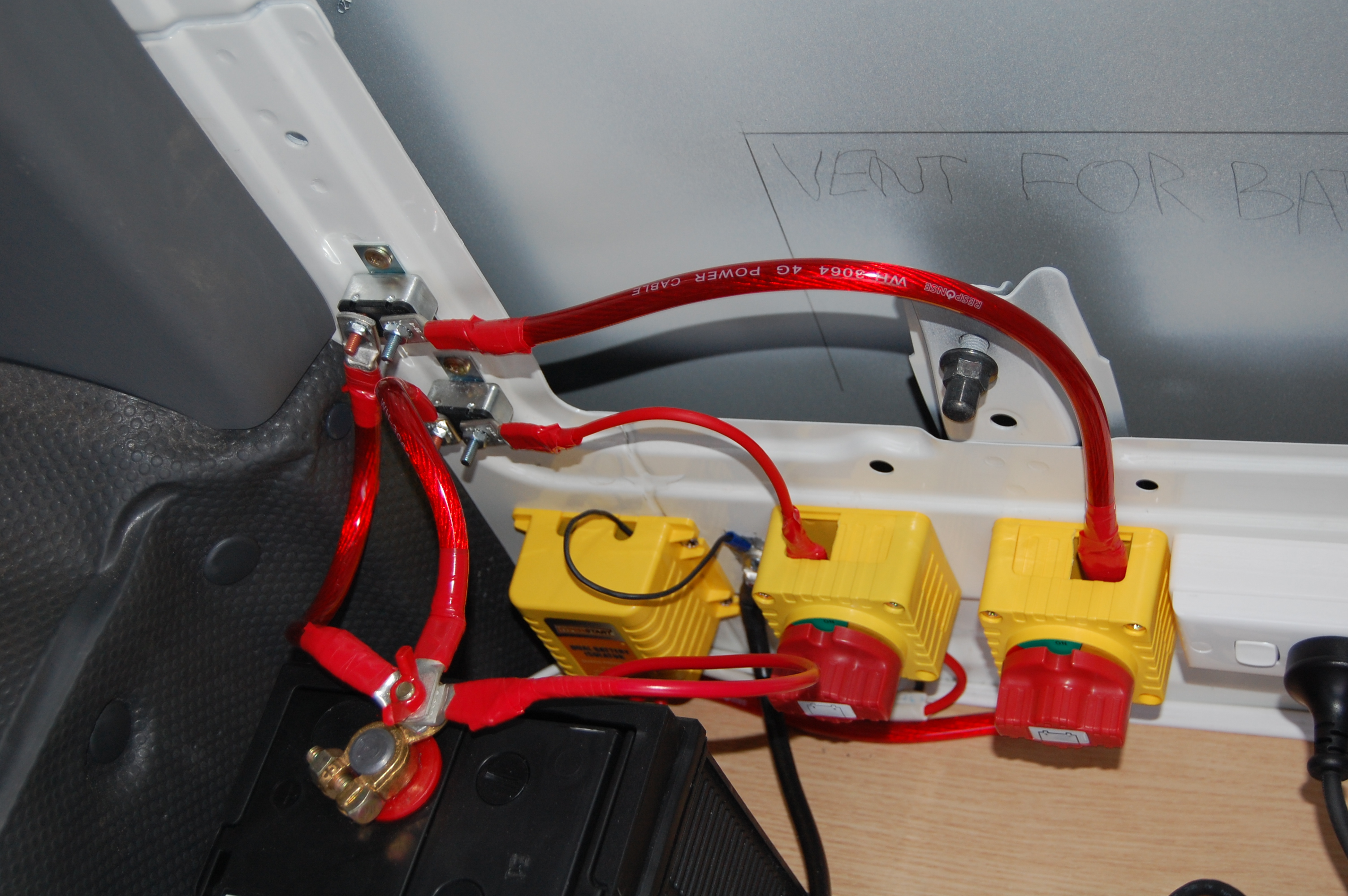 2 – External Venting. Purchase a sealed battery box and then run a vent to the outside of the van. This I don’t recommend as it makes maintenance hard, and is still not 100% safe.