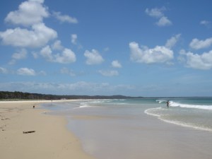 We took our time driving down to Yamba via the coastal route, stopping first at the fabulous Seven Mile Beach at Lennox Head. Famous among surfers for hosting one of Australia’s longest warm water surf breaks, the main attraction is unsurprisingly its stunning white beach and huge crashing waves. After dipping a toe in the water, we parked up and watched a group of beginner surfers and some French national juniors sharing the waves, while locals and tourists dropped in (to the car park – not our van) to take in the dazzling view and inhale some sea air. The whole place was buzzing.