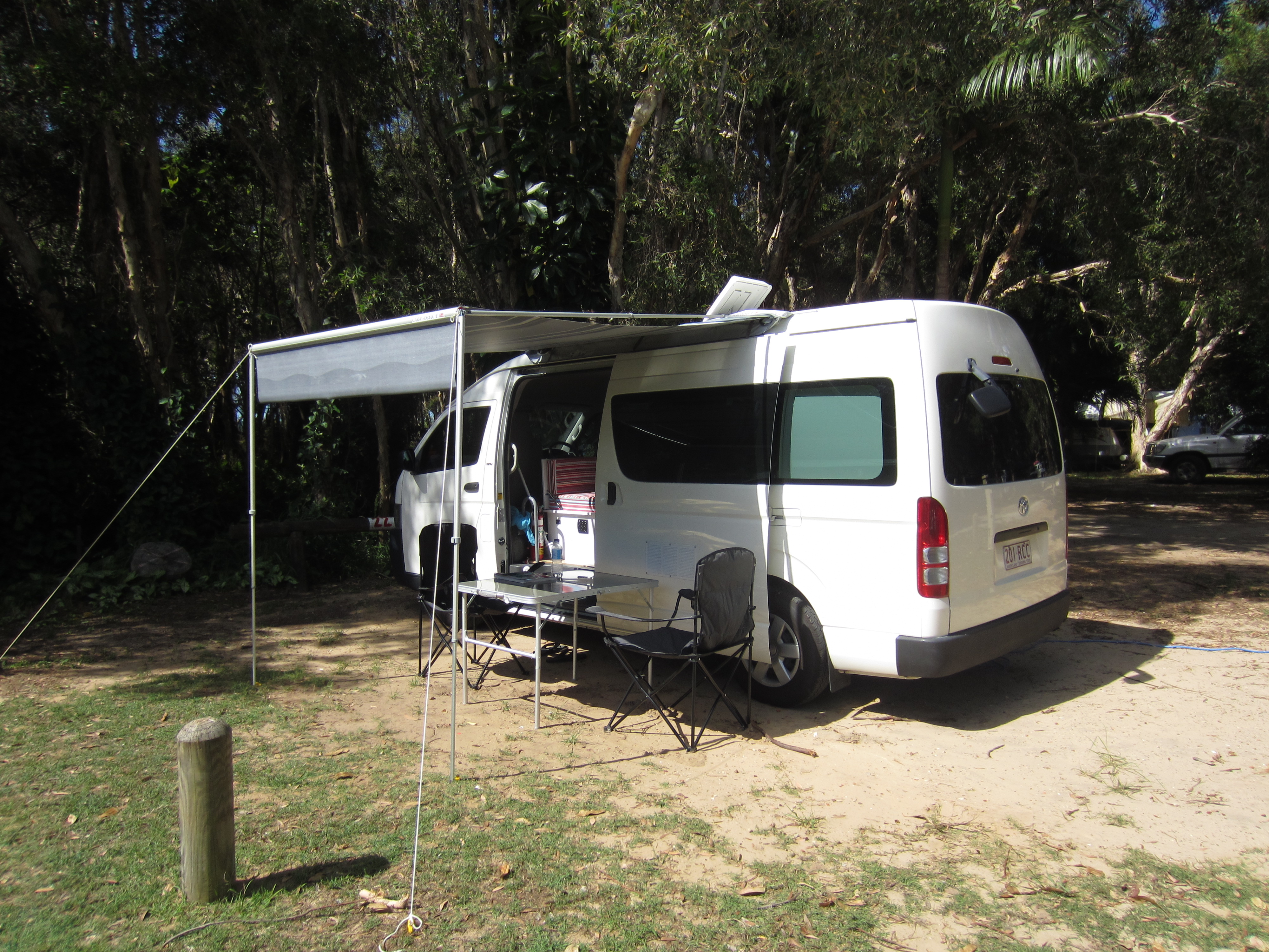 Reservations are essential at all campsites on Straddie, and they can book out months in advance in peak periods. The booking process was a bit frustrating. As is often the case at Australian campsites there’s no online booking facility so you have to ring up the tourism office, but the opening hours were quite restrictive – don’t leave it ‘til the last minute. When our schedules finally aligned, our first choice site at Cylinder Beach was unsurprisingly full (it only has a small number of powered sites) so we ended up at Adder Rock.