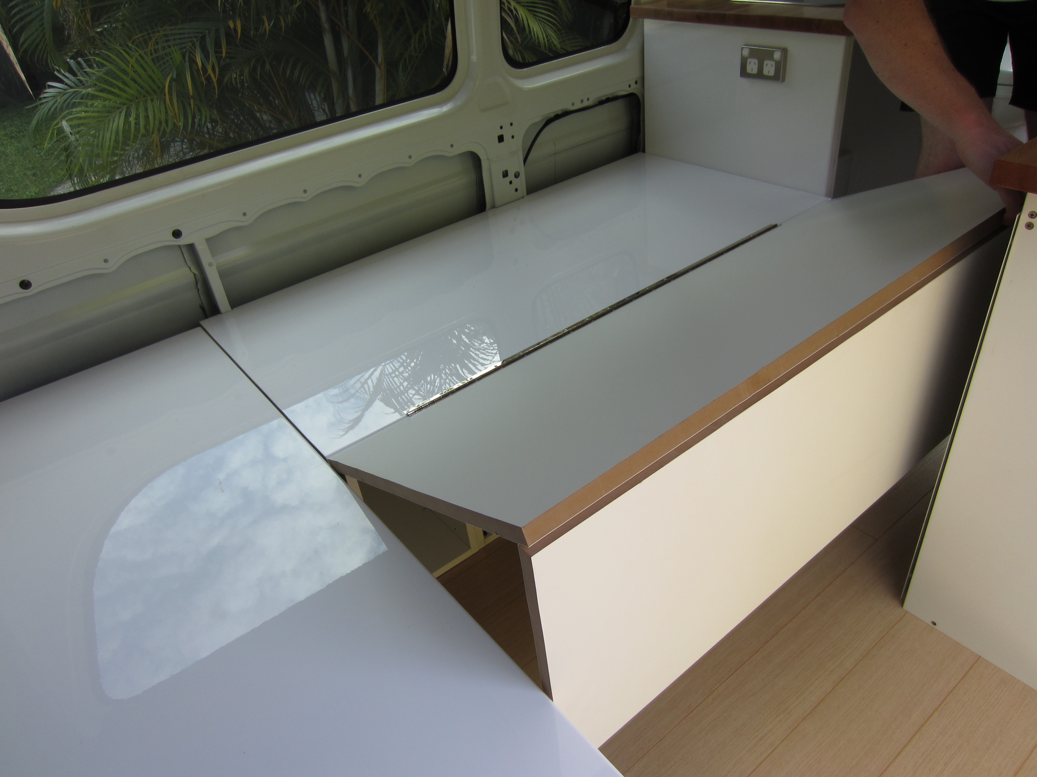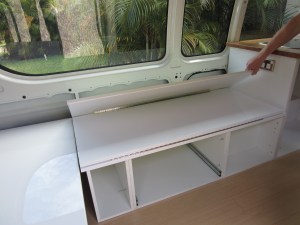 Well ours has been very complicated, but having spent the last couple of weekends playing with hinges and bolts and sliding locks, Paul has now fixed and secured all the campervan seating. Let’s hope we’ve finally seen the last of the comedy seesaw moments.