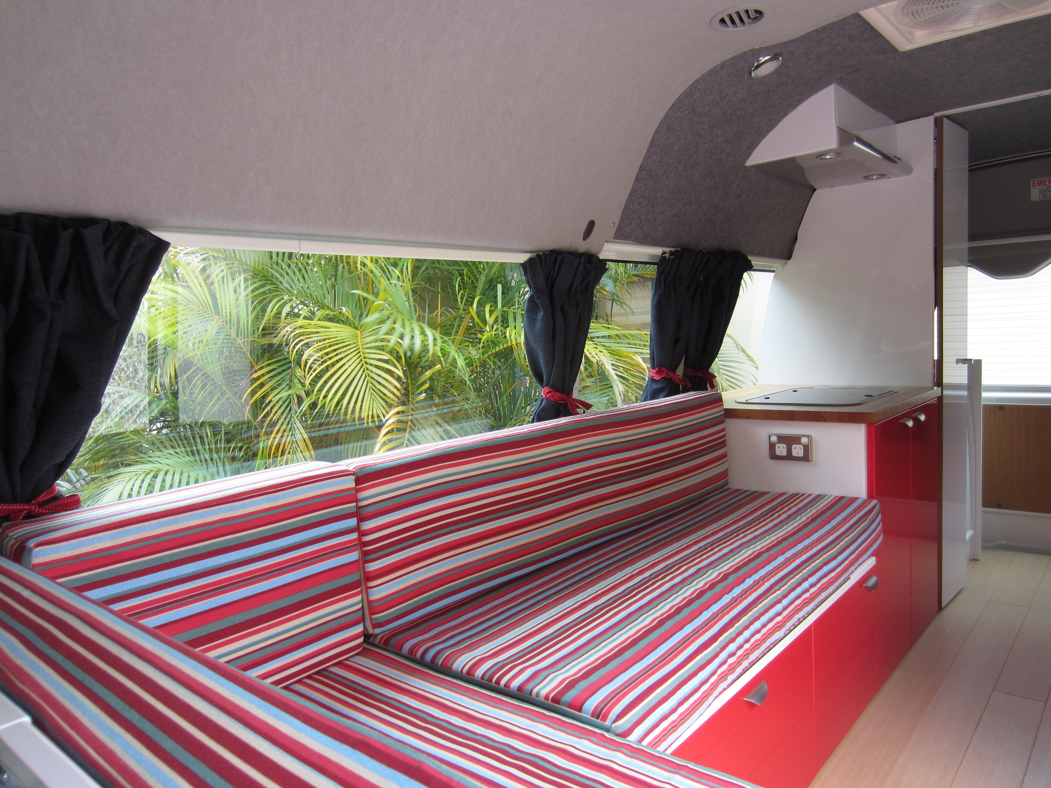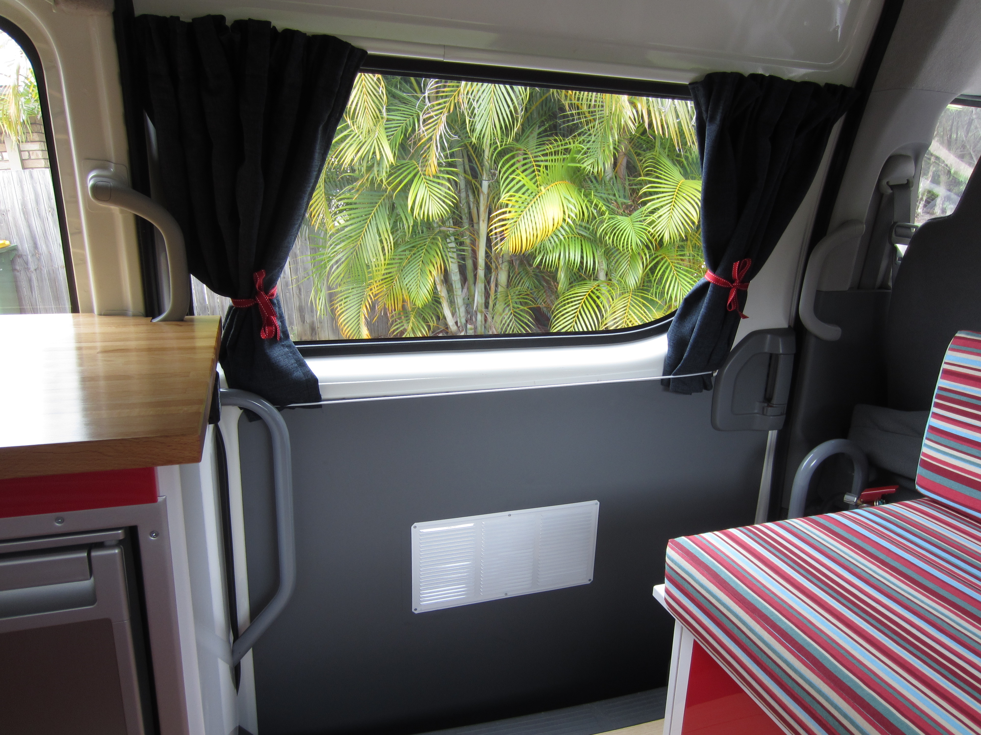 I also feel I might have lured some unsuspecting audiences here under false pretences, because quite a few people have arrived at the blog having googled ‘calming colours’. This must hark back to our early interior design plans to create a zen like atmosphere; I’m sure anyone hoping to be faced with a calm and serene environment beat a hasty retreat at the sight of our eventual fabric choice. Hopefully the people who googled ‘fun campervan upholstery’ left feeling a bit more fulfilled.